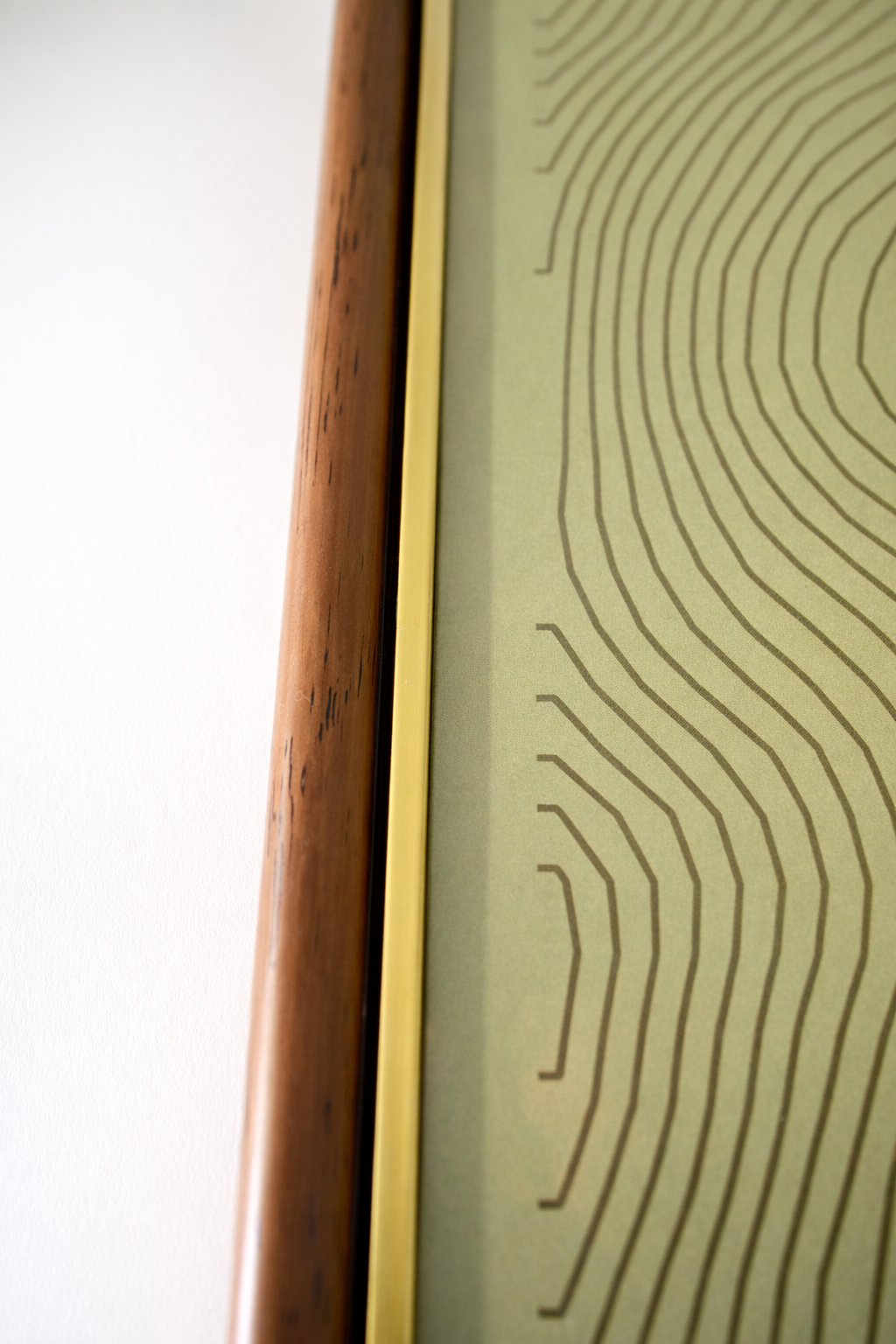 Harmonijne połączenie naturalnego drewna z eleganckim złotym detalem sprawia, że rama doskonale odnajduje się zarówno w klasycznych wnętrzach, jak i bardziej stylowych aranżacjach – gabinetach, salonach czy przestrzeniach inspirowanych tradycją i rzemiosłem. Starannie wykończona powierzchnia, widoczna struktura drewna oraz precyzyjnie wykonany frez podkreślają jakość premium produktu.